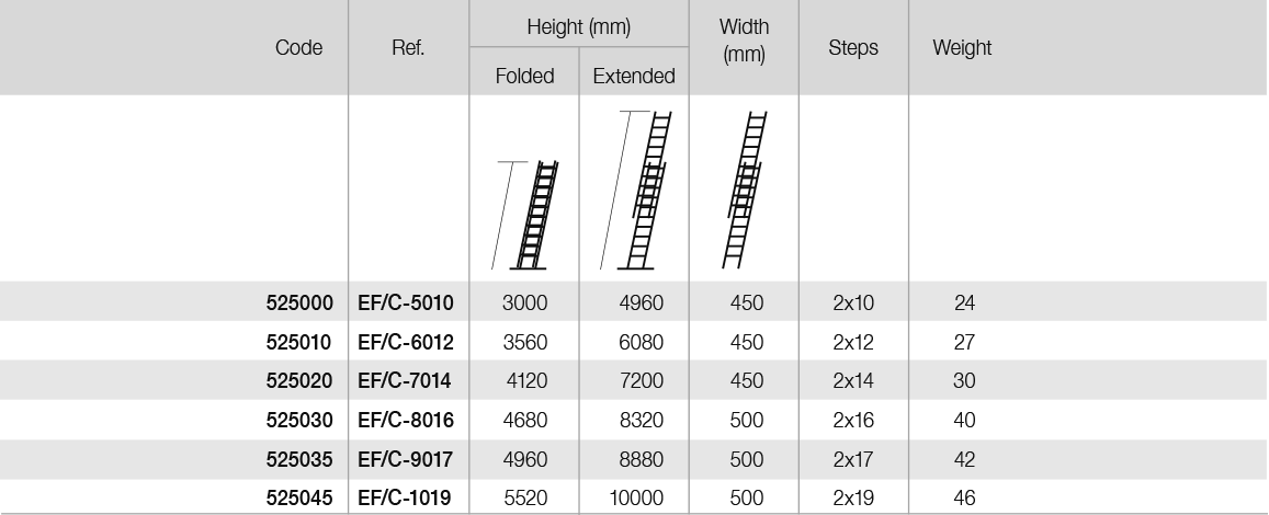 • Solid rungs for those most susceptible to wear and tear, increasing ladder’s durability (first section of base part and last section of extendable part).