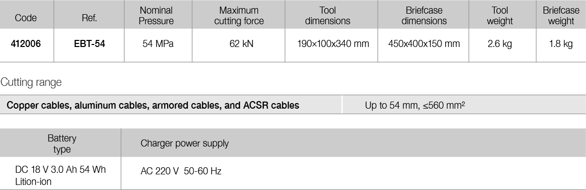 - It cuts the cable in seconds, without any effort, which optimizes time and significantly reduces the operator's working hours.