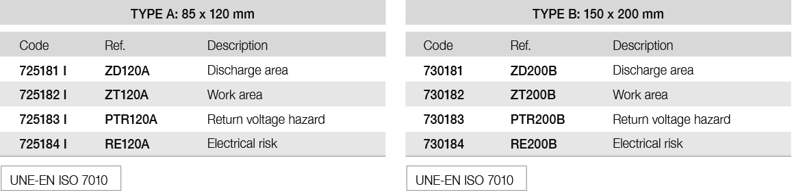 Rectangular warning signs can be Type A or Type B, depending on the installation to be signaled and its location.