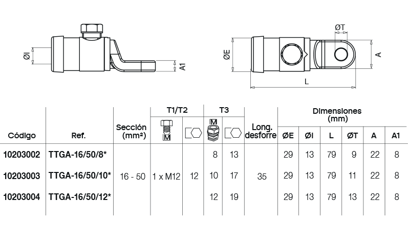 Nuevas referencias diseñadas para cubrir secciones de 16–50 mm²
