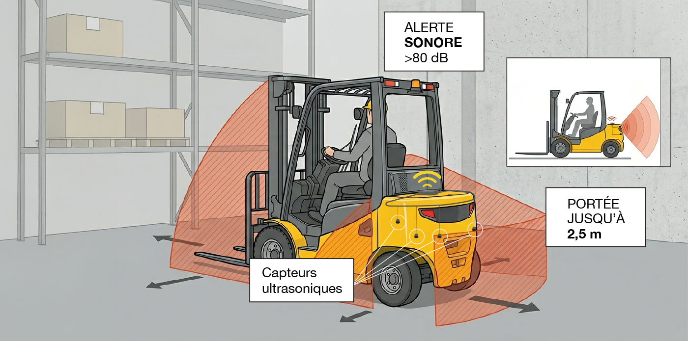 • Détection ultrasonique d’obstacles (jusqu’à 2,5 m)