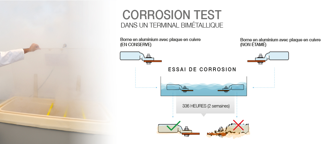 En conclusion, choisir un bon connecteur électrique est essentiel pour garantir l'efficience et la sécurité des installations électriques. Il convient de prendre en compte des facteurs tels que le matériau, le diamètre, le type de câble et la corrosion galvanique afin de choisir le connecteur adéquat. Les connecteurs bimétalliques sont réputés pour leur capacité à résister à la corrosion et pour leur polyvalence dans différentes applications. Notre cosse exclusive TDC/S est une option parfaite pour les applications bimétalliques, puisqu'elle est revêtue d'une couche d'étain. L'étain se trouve entre l'aluminium et le cuivre dans la série galvanique et agit comme une couche protectrice entre ces deux métaux. L'application de la couche d'étain, au moyen d'un bain électrolytique, empêche l'union directe entre l'aluminium et le cuivre, prévenant ainsi la réaction chimique. En tenant compte de ces aspects et en choisissant des connecteurs de qualité, il est possible de garantir un rendement optimum et une durée de vie plus longue du système électrique. |