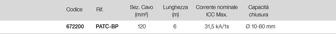- 1 pinza in lega di alluminio PA40/BP con serraggio a vite per conduttori tondi di diametro min 10 e max 60 mm.