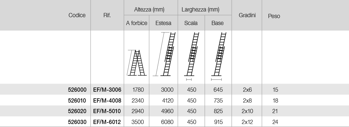 • Scala riconfigurabile per uso in appoggio, a forbice o allungabile.