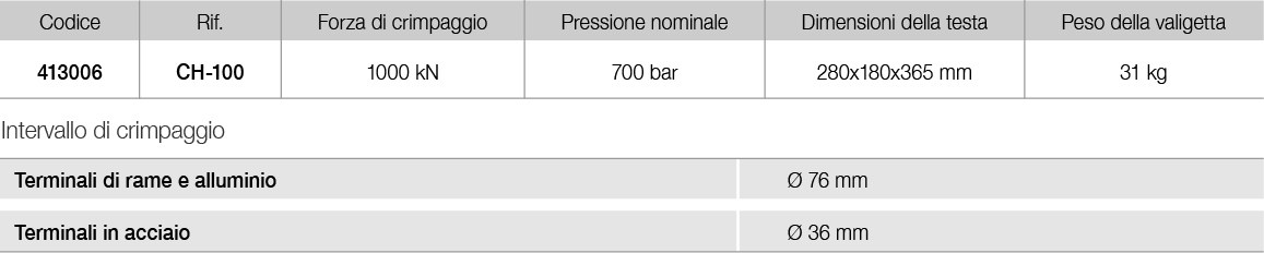- Ideale per linee aeree ACSR, morsetti di trazione per 110 kV e manicotti per cavi sotterranei da 200 kV.