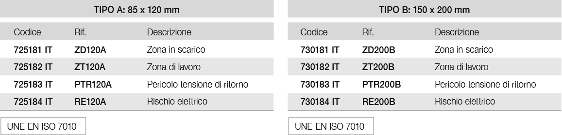 I segnali rettangolari di avvertimento possono essere di Tipo A o Tipo B a seconda dell'installazione da segnalare e della sua posizione.