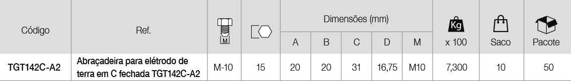 Garra fechada concebida para a ligação de condutores a hastes de terra de Ø18,6 mm.