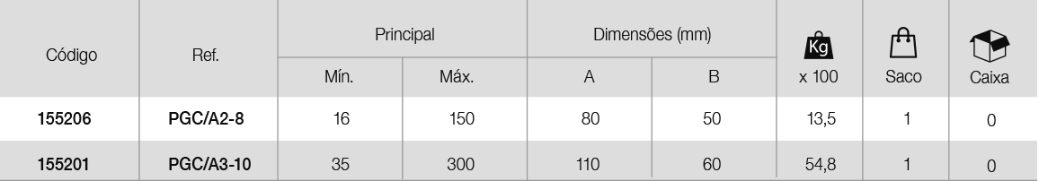 Os ligadores PGC/A são fabricados em fundição de alumínio.