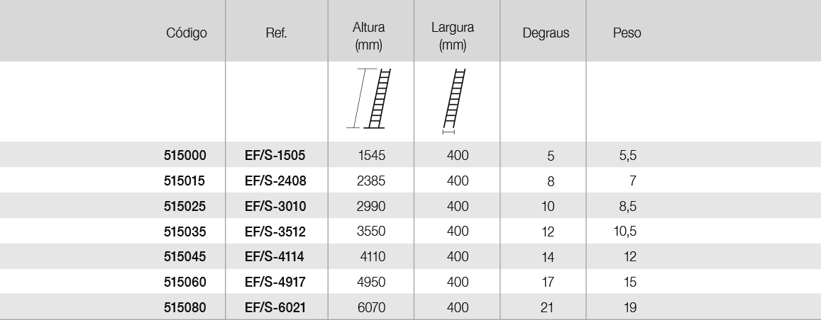 - Degrau na cor vermelha, conforme especificado pela norma EN-131 como indicativo de limite de subida e não de uso.