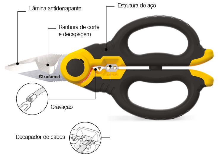 Tesouras profissionais premium 3 em 1: fabricadas em aço inoxidável para uma resistência e durabilidade excepcionais. Equipadas com lâminas de alta dureza e uma borda serrilhada antiderrapante para um corte preciso. Os cabos são leves, robustos e feitos de material plástico resistente a impactos, com estrias antiderrapantes para um agarre seguro.