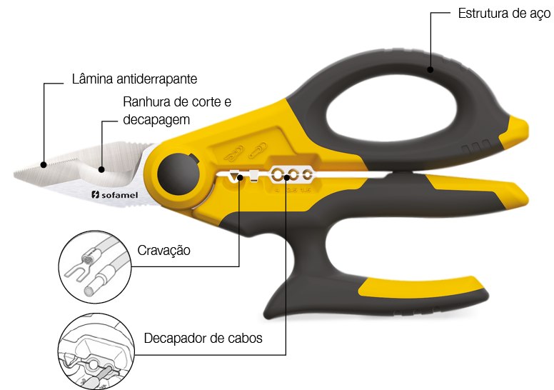 Tesouras profissionais premium 3 em 1: fabricadas em aço inoxidável para uma resistência e durabilidade superiores. Contam com lâminas de alta dureza e uma borda serrilhada antiderrapante para um corte preciso. Projetadas ergonomicamente para um uso confortável, preciso e duradouro. Capacidade ampliada de decapagem, cravamento e corte.