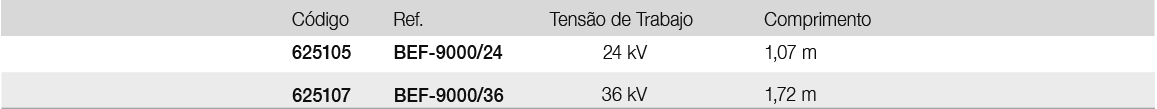 Vara de um único elemento fabricada com tubo de poliéster e fibra de vidro de Ø 40 mm, com guarda-mãos e empunhadura para manusear a correia.